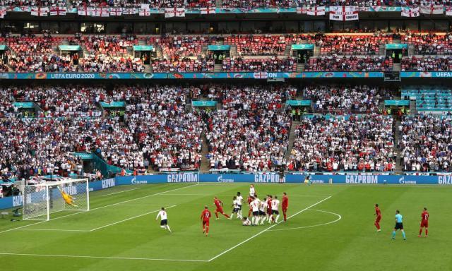 周三英格兰对阵丹麦,新温布利大球场一口气放进了超过64000球迷。现场除了昂贵的包厢区还能看到空座之外,已经和疫情前全场爆满时的气氛相差无几。三狮球迷最终也在这里目睹自己的球队在1966年之后首次晋级大赛决赛。
